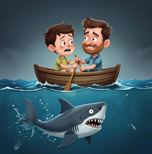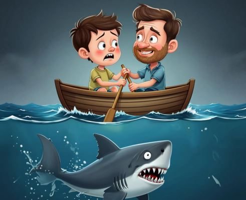 Это очень напряженный и захватывающий рассказ. Я переживал за мальчиков, когда читал про акулу. Мужество отца вызывает большое уважение.