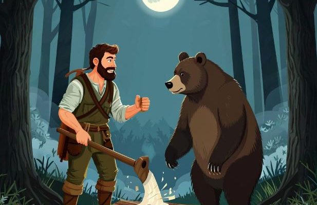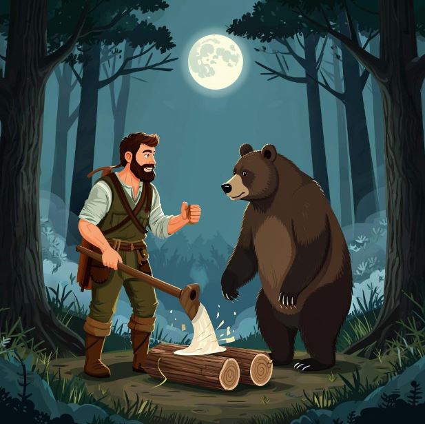 Краткое содержание: Мужик пошел в дремучий лес за дровами. В лесу он встретил медведя, который считал себя полным хозяином леса. Медведь запретил мужику рубить деревья, угрожая съесть его. Но мужик не испугался и объяснил медведю, что людям нужны дрова для тепла, особенно зимой. Он рассказал о том, как люди живут, работают и заботятся друг о друге. Медведь задумался и понял, что не все в мире принадлежит только ему.