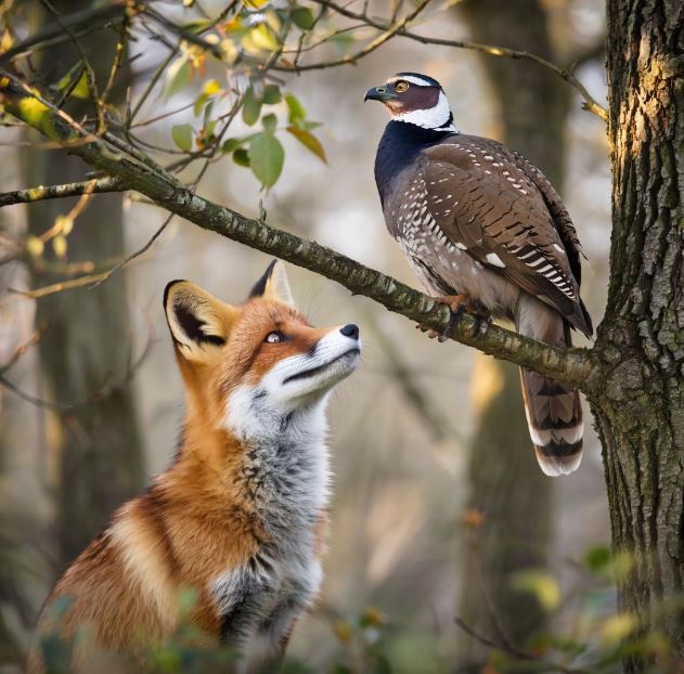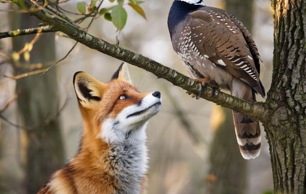 Хитрая Лиса пытается заманить Тетерева с дерева, чтобы его съесть: сначала притворяется доброй, предлагая просто поговорить, затем пугает вымышленным указом, будто все птицы должны спуститься на землю, и наконец льстит, приглашая полюбоваться её красотой. Но умный Тетерев разгадывает все уловки, отказывается спускаться и заключает: «У лисы много друзей, а у меня — много врагов», оставаясь в безопасности на дереве. Сказка учит осторожности и тому, что хитрость побеждается умом.