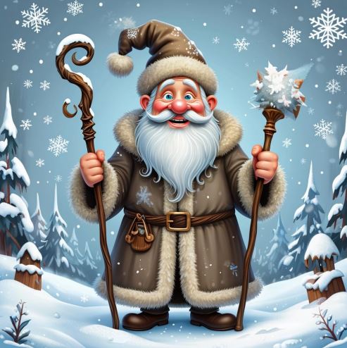 Описание: Волшебный старик с седой бородой, который живет в ледяном доме под землей.