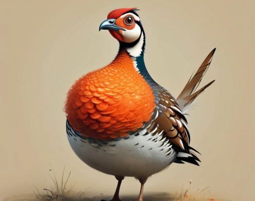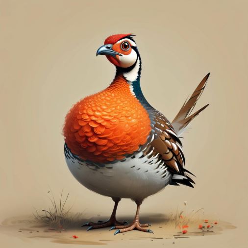 Описание: Куропатка-мать с ярким оранжевым пятном на шее. Мудрая и заботливая.