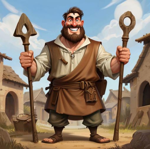 Описание: Молодой крестьянский парень, работник попа. Высокий, сильный, умелый в любом деле.