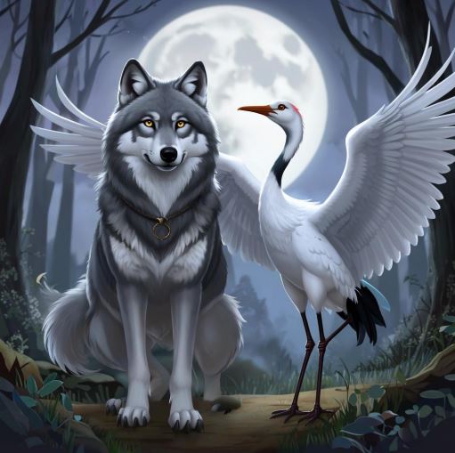 Волк символизирует зло и неблагодарность, Журавль — доброту и наивность